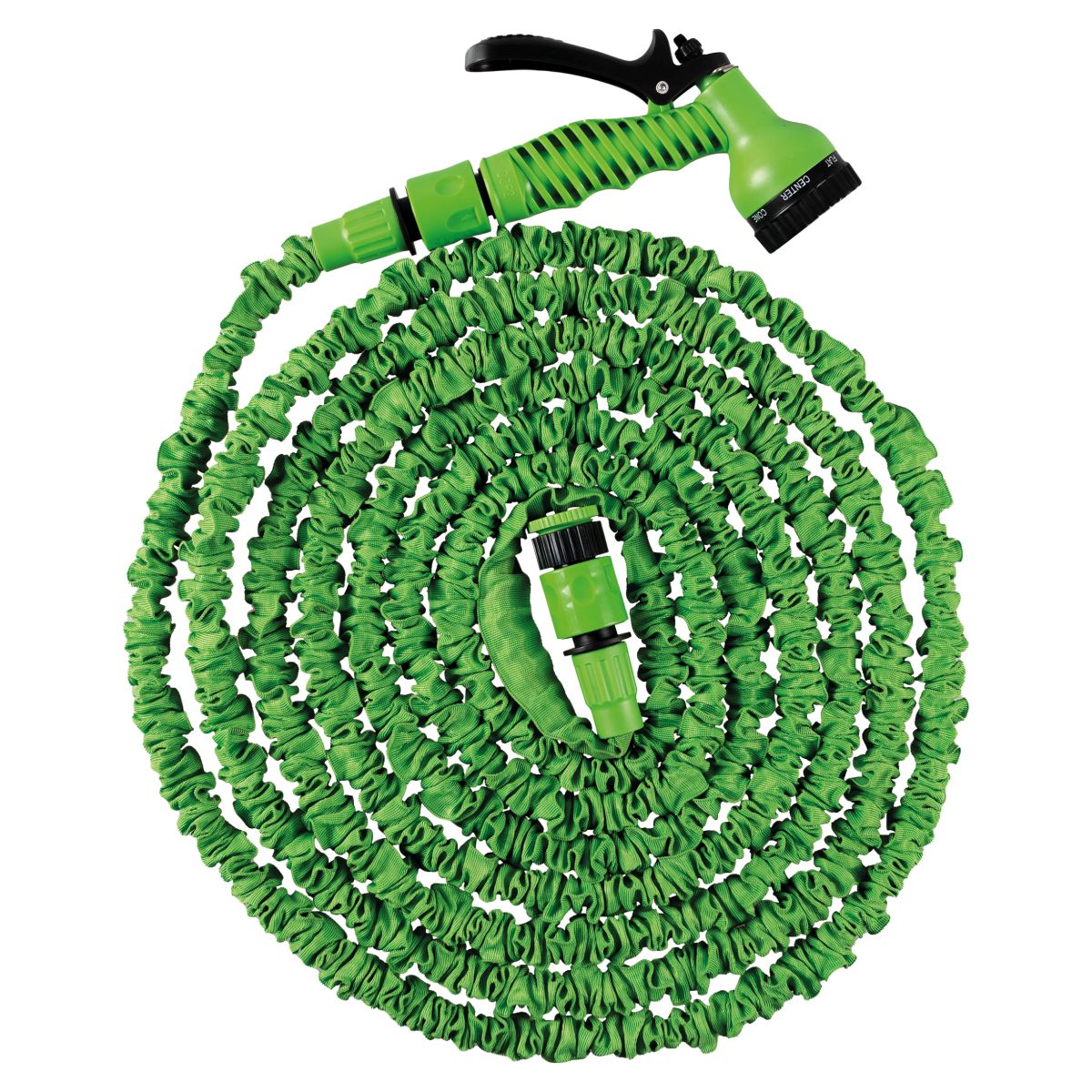 A hosepipe kit consisting of a length of3x expandable hosepipe, a threaded indoor/outdoor tap connector, a hose end connector and a 7 functionspray gun. The spray gun has 7 settings, Mist, Jet, Shower, Flat, Centre, Cone and Full. Ideal for watering your garden, washing your car and bathing pets etc. Expandable hosepipe will extend up to 3 times its original length with water pressure and returns to normal size when the water is turned off. Expandable hose has the advantage of being tangle, kink and twistfree andlighter and more manageable than a standard hose The kit is available with various lengths of hose, choose the hose length that suits the size of your garden.