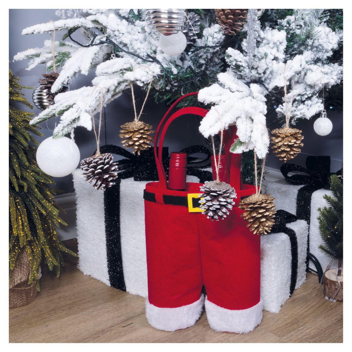 Carry up to 2 wine, champagne or beer bottles in this festive and quirky felt bottle bag. The high strength felt bag is in the style of Father Christmas trousers and would make a wonderful secret Santa gift for work colleagues. Alternatively use the bag yourself when visiting friends and family during the festive period. Use as part of a Christmas gift if giving wine or bottles.