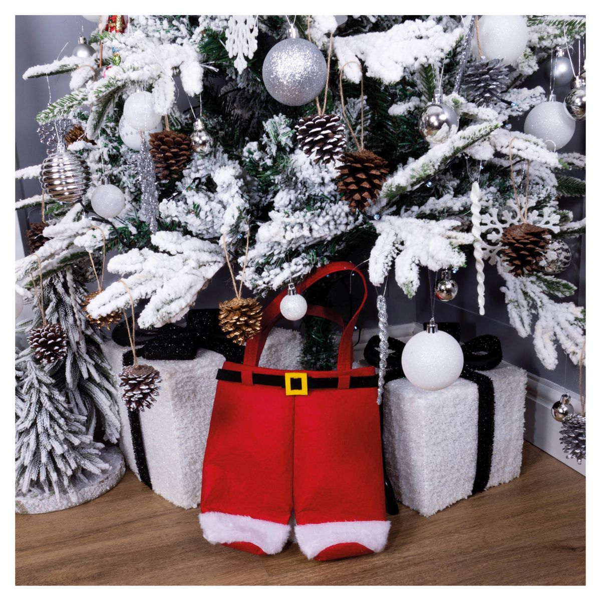Quirky and festive Father Christmas's trousers design