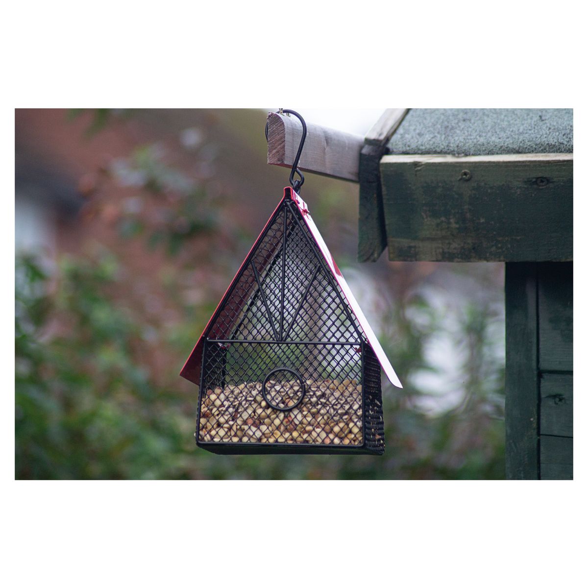 This contemporary house style bird feeder from St Helens Home ;;Garden is ideal for feeding nuts to the wild birds in your garden. The metal hanging hook allows you to hang the feeder from trees or other structures giving you the perfect vantage point from which to view the visiting birds. Both sides of the roof open to allow you to easily fill the feeder with nuts whilst also helping to keep the food clean and dry. The mesh design of the feeder means birds can perch as they feed. The Powder coated finish provides resistance from the elements.