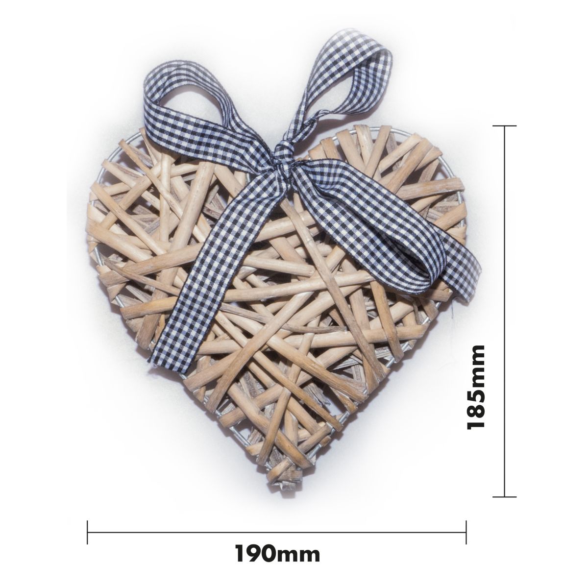 Add a touch of class to your Christmas decorations with this beautiful and rustic wicker Christmas heart. The heart is made from woven wicker and is finished off with a black and white check bow. This heart is perfect for displaying in your lounge, hallway, kitchen and would even make a fabulous addition to your work space. It can be hung up using the metal loop or displayed as a free standing decoration. It could also be used as part of a temporary display for Christmas parties, model villages, santas grottos and restaurants and bars.