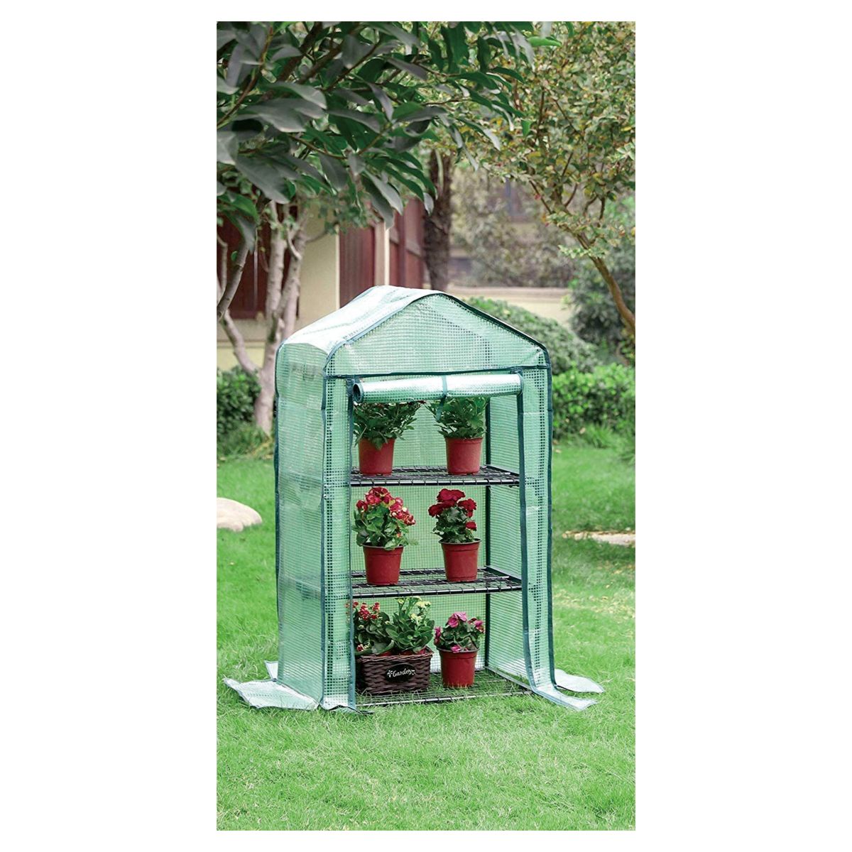 The mini greenhouse is perfect for growing seedlings and plants until they are strong enough to be planted outside in your garden. The wire shelves allow for drainage after watering and the PVC cover protects your plants from the elements such as rain and frost, the cover also helps to keep your plants and seedlings warm encouraging quicker germination and growth. The mini greenhouse is perfect for use in smaller gardens, on the balconies of flats and even in the gardens of static caravans. The greenhouse is completely portable and can be dismantled and stored away easily when not in use.