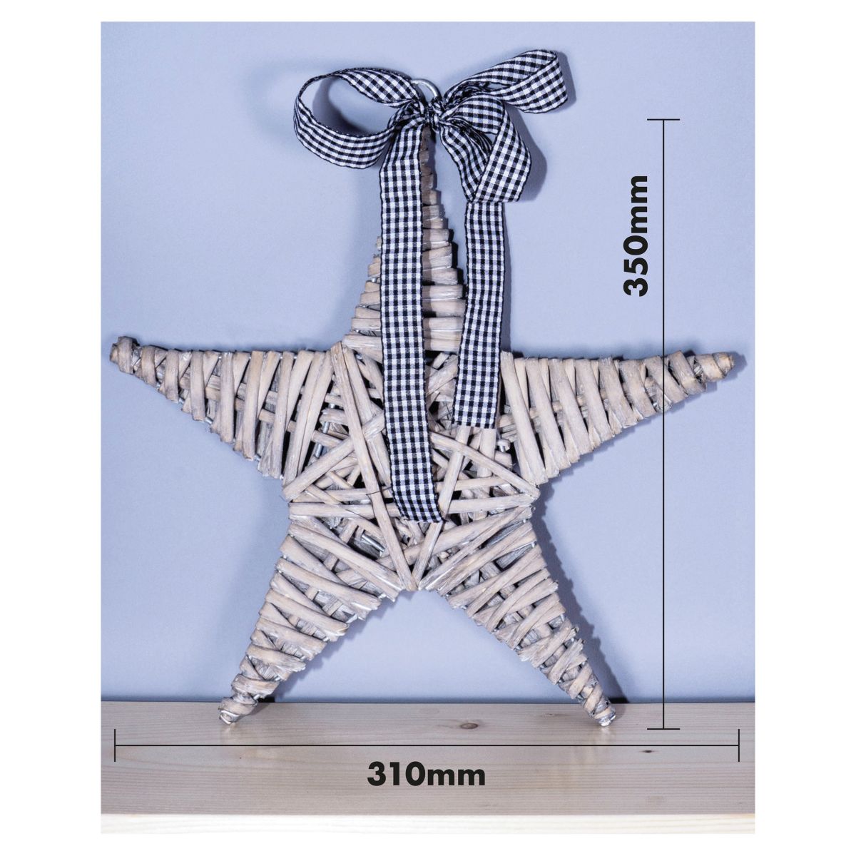 Add a touch of class to your Christmas decorations with this beautiful and rustic wicker Christmas star. The star is made from woven wicker and is finished off with a black and white check bow. This star is perfect for displaying in your lounge, hallway, kitchen and would even make a fabulous addition to your work space. It can be hung up using the metal loop or displayed as a free standing decoration. It could also be used as part of a temporary display for Christmas parties, model villages, santas grottos and restaurants and bars.