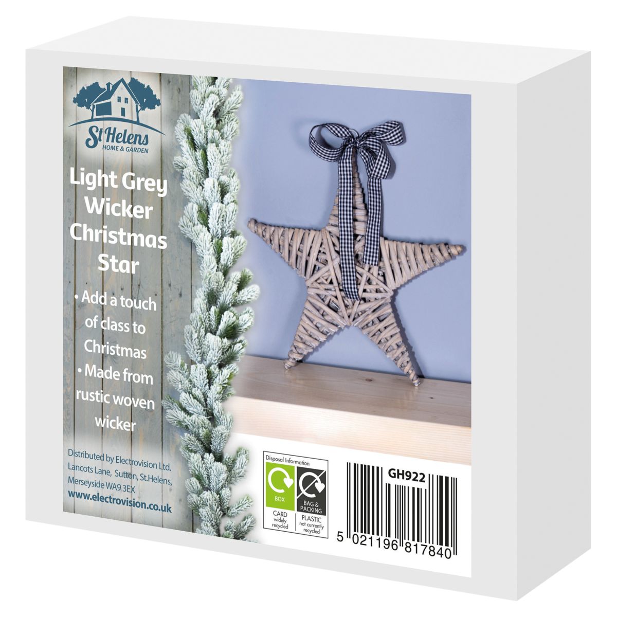 St Helens Home & Garden, Natural Wicker Christmas Star (Colour Light Grey)