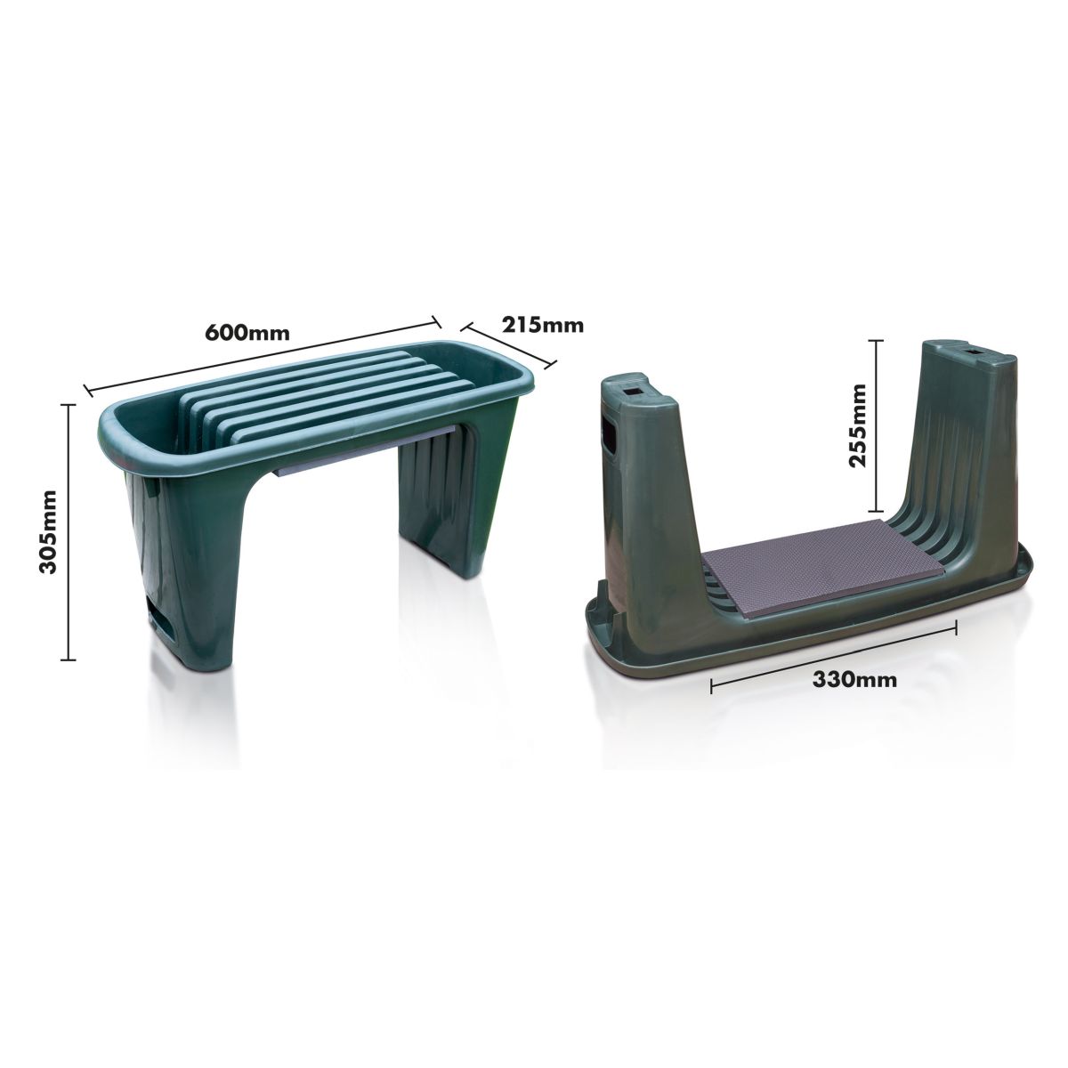 This 3-in-1 garden kneeler combines a padded kneeler with a seat and tool storage, the legs of the kneeler double as handles to help pull you back up into an upright position. The padded kneeler makes tending to flowerbeds, weeding or trimming lawn edges more comfortable, when you are done simply turn it upside down and use the seat to rest and admire your handiwork. Items such as trowels, forks and gardening gloves can be stored in the handy storage compartments.