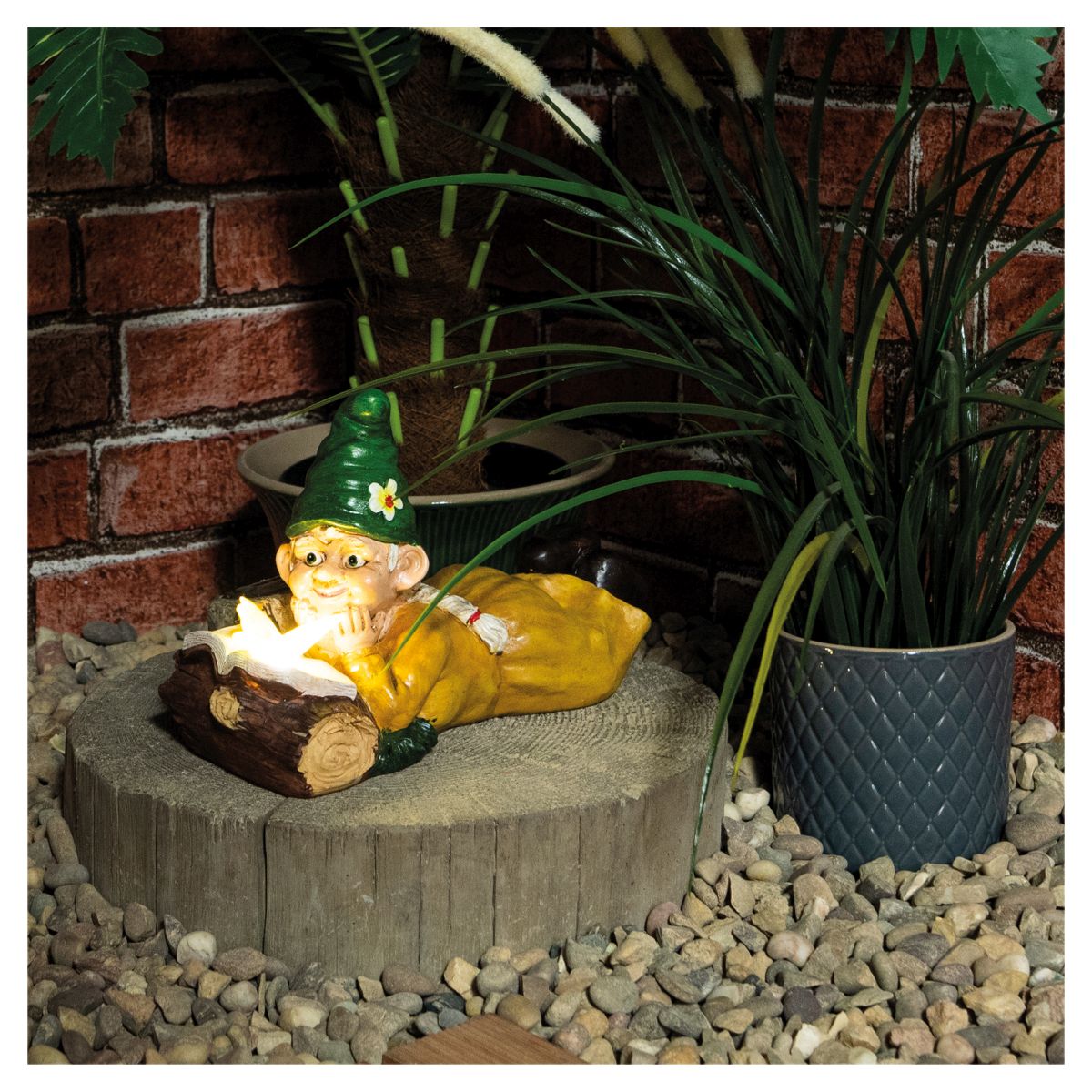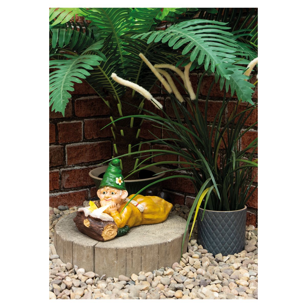 My name is Gabriella, I am a beautiful and quirky solar garden ornament, I'm a little bit special thanks to my solar light which will brighten up your garden and lawn at night, I am so economical, my light charges up during the day by absorbing sunlight, aren't I clever. I'm a very charming ornament painted in beautiful, vibrant colours and I will enhance the look of any garden whether it be day or night, you will be the envy of your neighbours thanks to me. My body is made from durable resin making me waterproof and able to withstand harsh weather when placed outdoors, I really don't mind the rain. I don't know if you know this but I'm part of a collection, check out my family members; Gnomette, Gianna, Gnomeo and Giselle,their work names are GH1301, GH1302, GH1303 and GH1305.