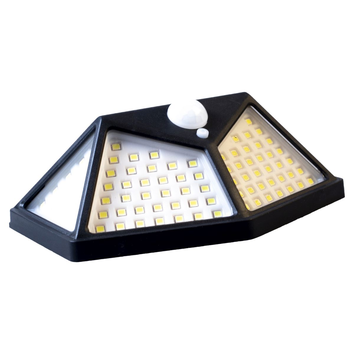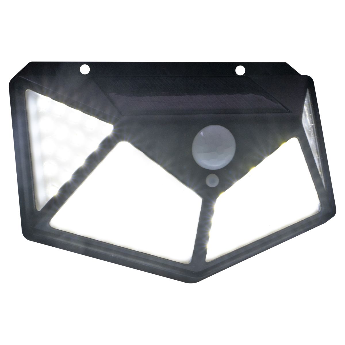 The St Helens Home & Garden, solar powered motion sensor security light has 4 panels and gives a 600 lumen illumination. The light has 100 super bright LEDs. The light detects motion up to 3m away at a 120 degree angle and will illuminate for 20 seconds. The light can be set to illuminate in low light or full light. The unit is powered by a built in 1,800mAH battery. Manufactured from ABS plastic. The light is fitted with a 5.5v 1W polysilicon solar panel. Supplied with an on/off switch. The light has 2 pre drilled holes in the solar panel for easy wall mounting.
