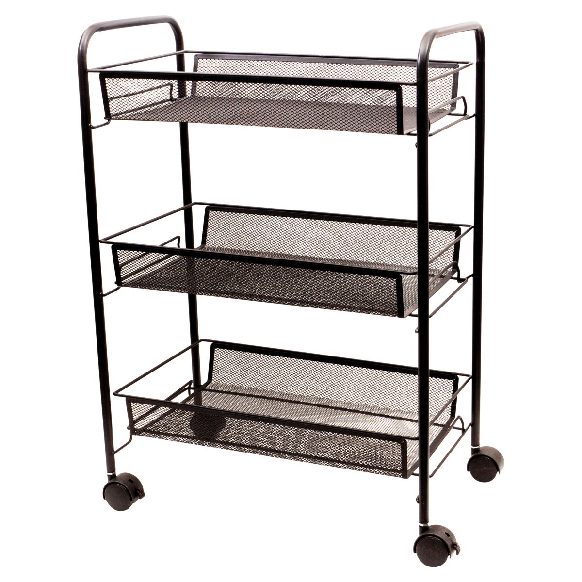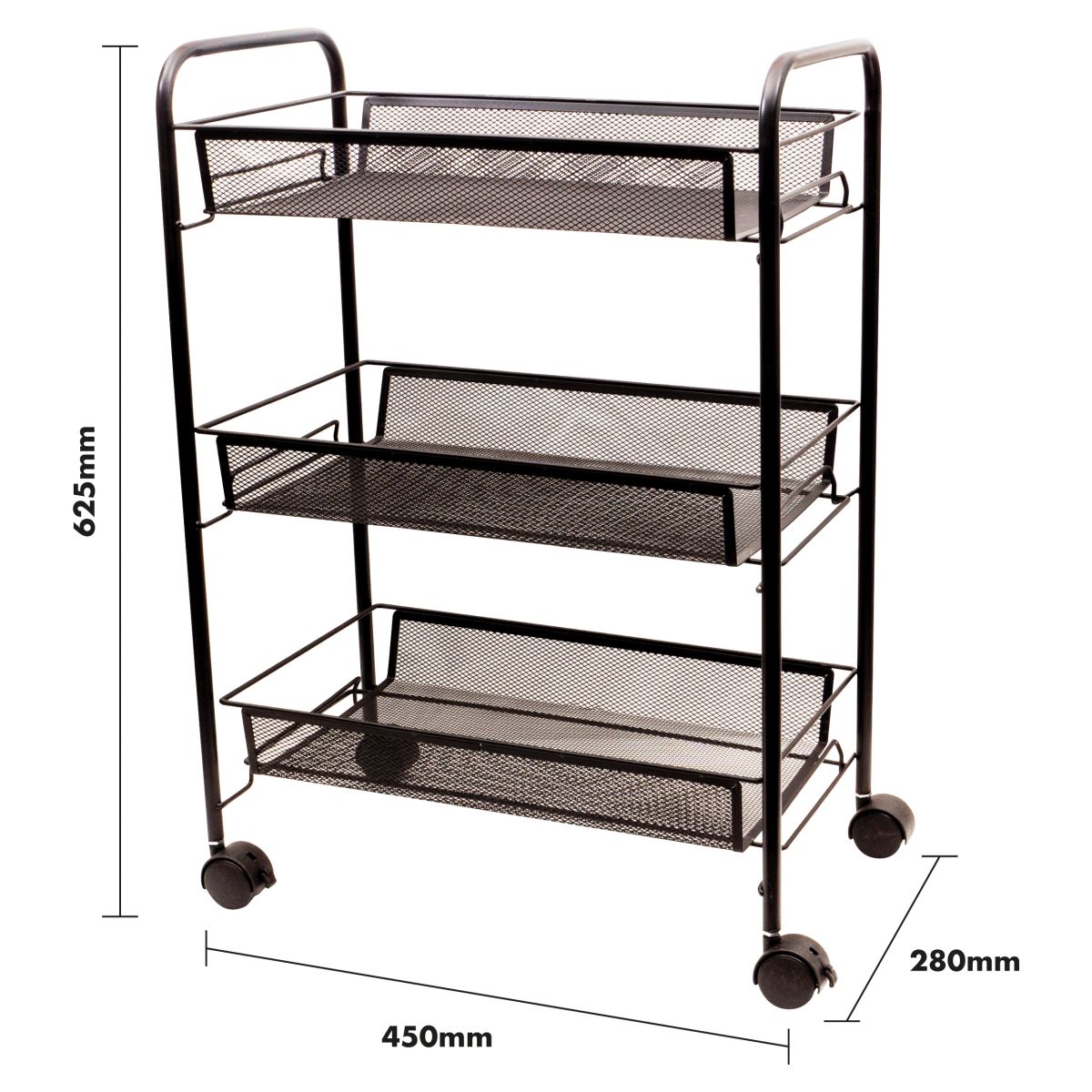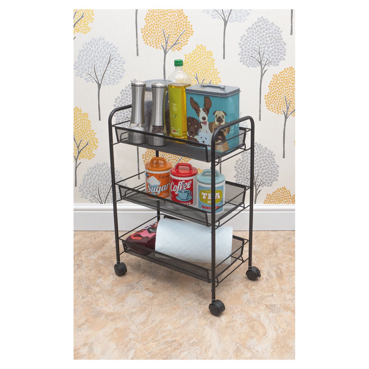 The stylish three tier storage trolley from St Helens Home and Garden is the perfect storage solution for any room in your home. The trolley features 4 castors making it completely portable and easy to manoeuvre. The trolley has a very generous capacity of up to 30kg. Use it in the kitchen for storing tins, dried goods or even fruit and vegetables, it is equally handy for home offices, bathrooms and even as a garage storage solution. Each storage shelf can be removed to allow you to store taller items as and when needed. The storage trolley is extremely versatile and can be moved from room to room depending on your storage needs.
