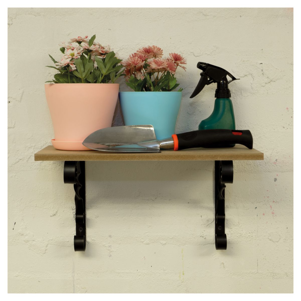 Use to mount bookshelves, garden shelves, greenhouse shelving