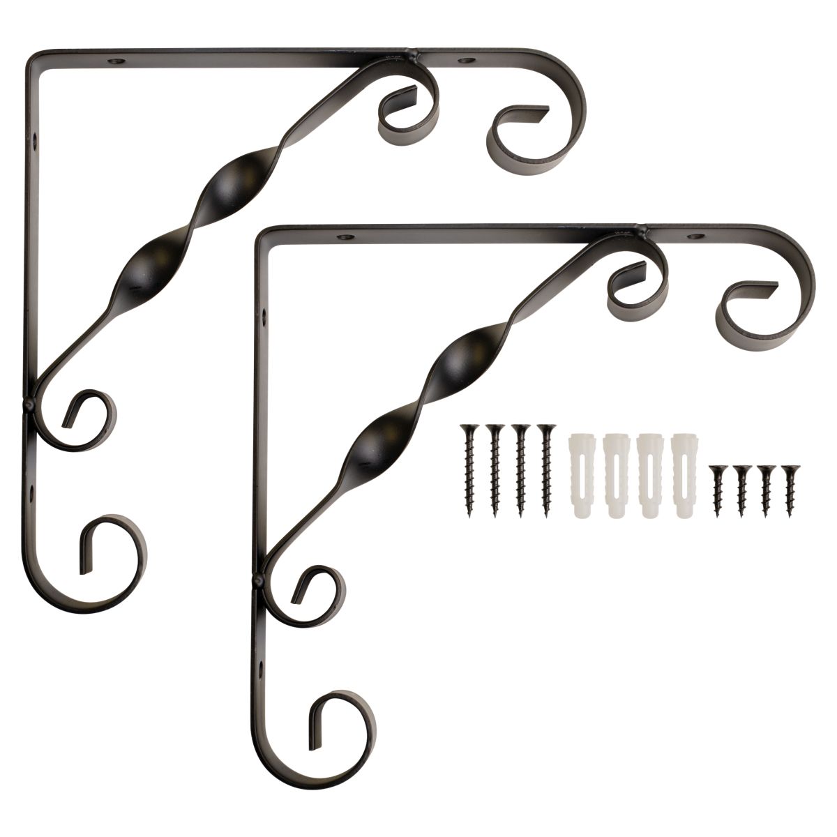 These ornate wall mount shelf brackets from St Helens Home Garden are designed to support bookshelves, garden shelves, household shelves and can even be used on external walls. The brackets are supplied as a pair and each bracket contains two screw holes, the set is supplied with 4 screws and 4 expansion tubes which is all you will need for the easy wall mounting of these brackets. The brackets when in use as a pair have a load bearing capacity of up to 15kg.