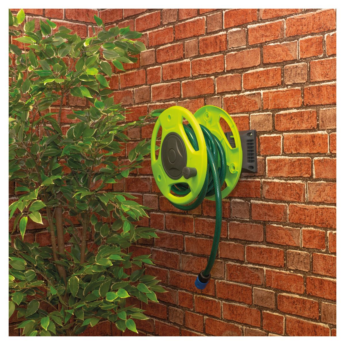 The wall mountable hose reel is a handy little must have item for your garden, it is ideal for keeping your garden neat and tidy and free of trip hazards. Simply wind your hose pipe around this reel with the attached handle when not in use, not only will it make your garden look neater but it also helps to prevent kinks and tangles in the hose prolonging its life. The hose reel can store up to 15m of 13mm diameter hose making it perfect for small to medium sized gardens. The hose reel is quick and simple to wall mount using the 4 fixing holes in the back,4 screws and expansion tubes are supplied. Please note that the hose reel is not supplied with a length of hose.