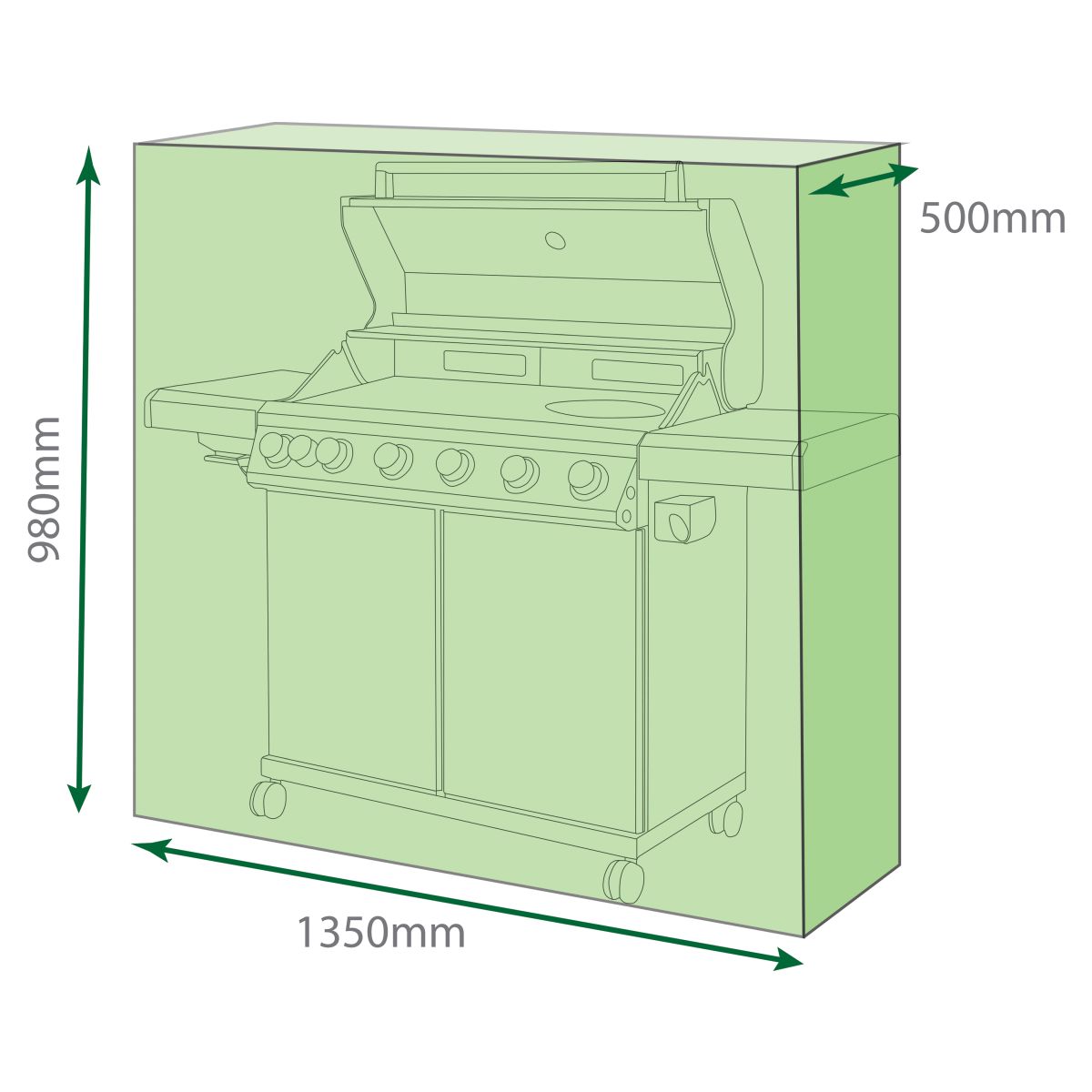 Designed to cover BBQ burner Max Dimensions: 98x135x50cm