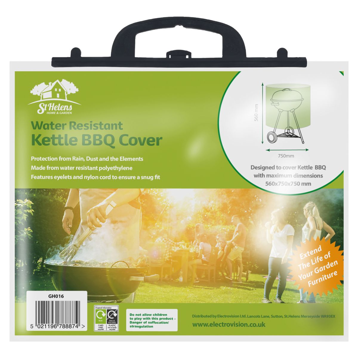 The kettle BBQ cover from St Helens Home & Garden, is the ideal way to protect your BBQ from the elements in the winter months, extend the life of your BBQ and keep it looking as good as new for as long as possible. Supplied in green to ensure it blends in with your garden the cover is made from water resistant polyethylene, the product features eyelets and a nylon cord to ensure a snug fit.