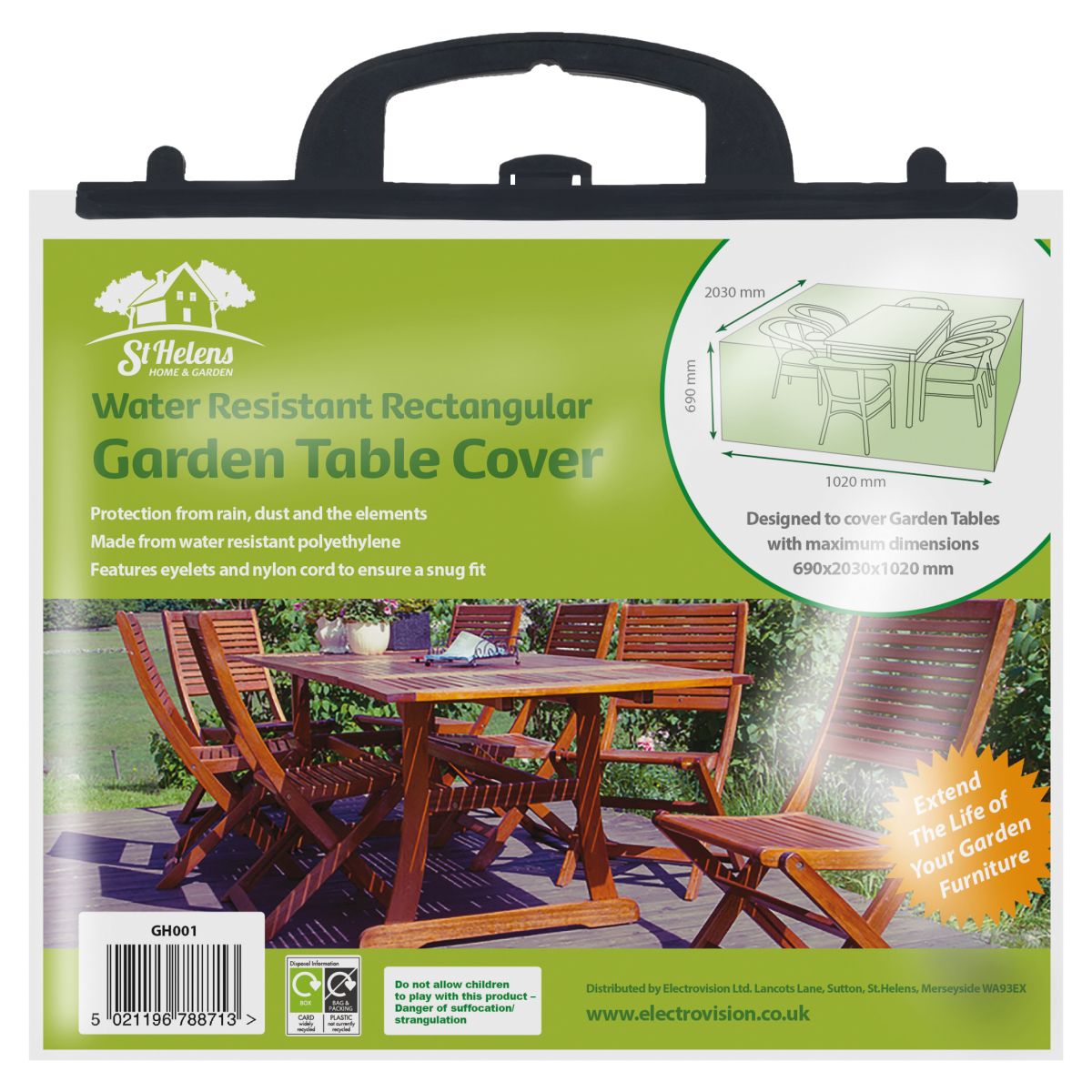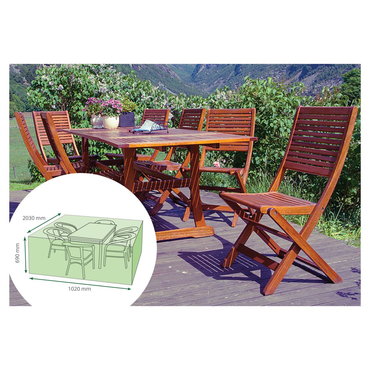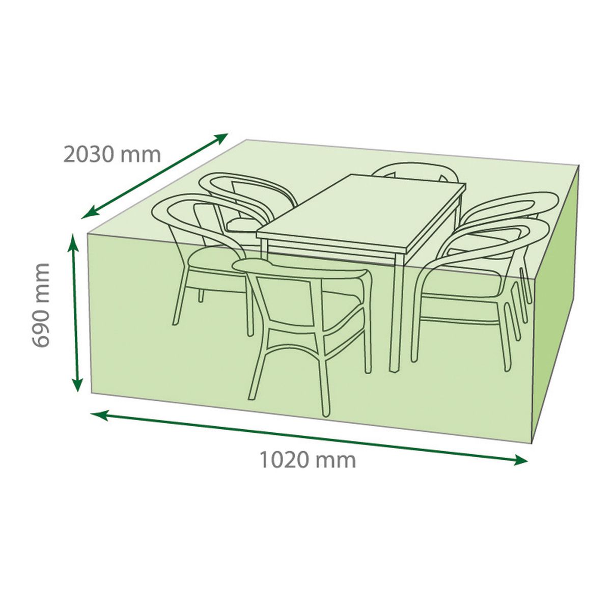 Designed to cover rectangular garden tables with maximum dimensions H: 690mm W: 2030mm D: 1020mm