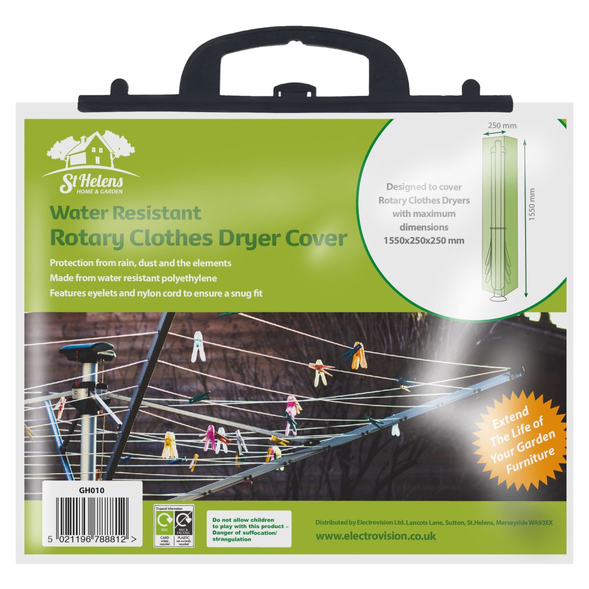 The Rotary Clothes Dryer cover from St Helens Home & Garden, is the ideal way to protect your rotary clothes dryer from the elements in the winter months. Supplied in a green, water resistant polyethylene the product features eyelets and nylon cord to ensure a snug fit.