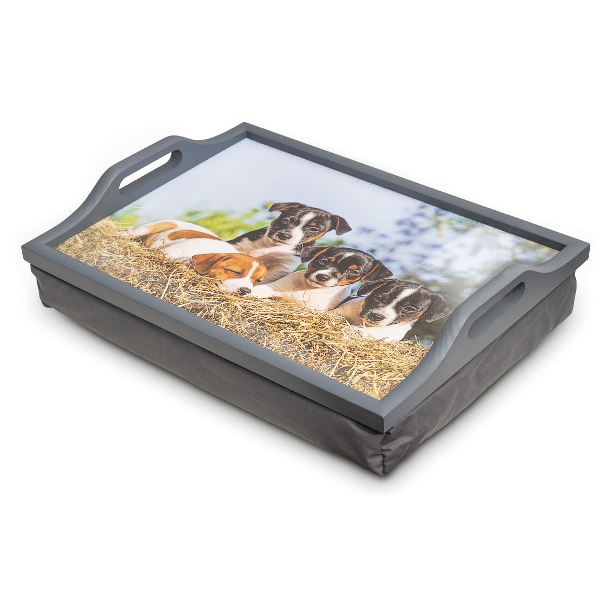 St Helens Home & Garden, Wooden Lap Tray with Puppy Design and Cushion