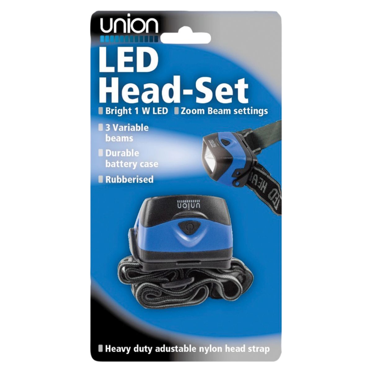 The Union COB LED Head Light features a Rubberised Protective Casing, a 3 function soft touch switch and an adjustable swivel head unit. The product also features an adjustable head strap and is Powered by 3x AAA Size Batteries (not included).