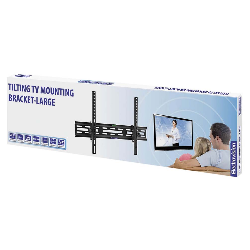 Enhance your viewing experience with this Tilting TV bracket. The bracket’s unique tilting mechanism can be used to angle the TV down by up to 12 degrees for the optimum viewing angle. It also comes complete with all the fixings required and a built in spirit level to ensure a perfectly level installation. Comes complete with a stylish black finish which could complement a range of rooms in the home.