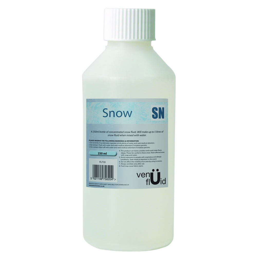 A 250ml bottle of concentrated snow fluid. Will make up to 5 litres of snow fluid when mixed with water.