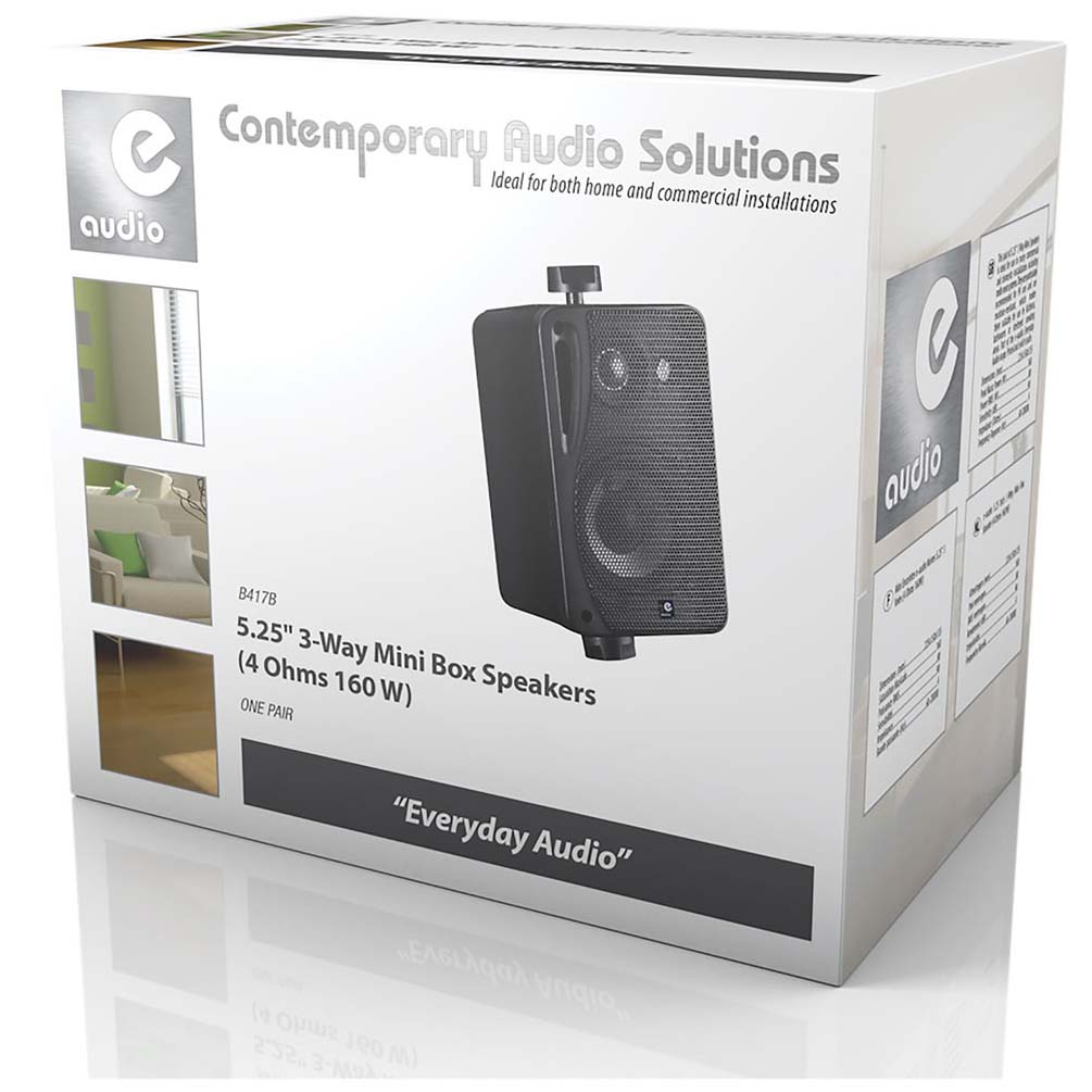 We're really sorry... ...we don't currently have that one in stock Please add your email and we'll notify you when it's back Email Your Name Your Email Your Comments SendClose Window Login Details Email Password Remember login on this computer? New Account Full Name Email Password All Categories» Advertising EquipmentAerials and Signal EquipmentAudio VisualAutomotive and MobileCabinet Speakers and AccCablesConnectorsDoor Entry and IntercomsElectricalEntertainment LightingGift IdeasHeating and CoolingHobbiesHome and GardenLampsLeadsLightingPower SuppliesPublic AddressSecurity ProductsSound SectionStands and SupportsStorageTelecommunicationTest EquipmentTools and Service Aids » 100V Line TransformersAttenuatorsMedia PlayersMegaphonesPA AmplifiersPA MicrophonesPA SpeakersRadio CommunicationSound LimitersSpeaker Horns » 100 Volt Ceiling100 Volt WallADS SpeakerCeiling SpeakersIn Wall SpeakerLow Impedance WallMarine SpeakerOutdoor SpeakerPendant SpeakerSpeaker Accessories » All Products eAudio Black 5.25 inch. 3 Way Mini Box Speakers 4Ohm 160WPRODUCT ID B417BThis pair of 5.25" 3 Way Mini Speakers is ideal for use in many commercial and domestic installations including multi-room systems; they are particularly recommended for PA use. Th...STOCK LEVEL 143 In StockPrice: £37.49 Quantity-+ Add to Cart« Previous | Next »Description This pair of 5.25" 3 Way Mini Speakers is ideal for use in many commercial and domestic installations including multi-room systems; they are particularly recommended for PA use. The Speakers are moisture-resistant, which makes them suitable for use in kitchens, bathrooms or sheltered smoking areas. The durable ABS cabinet houses a 5.25" rubber surround woofer, a wide dispersion cone midrange and a 1" super dome tweeter for powerful sound at all volume levels. Part of the e-audio Everyday Audio range, the 3 Way Mini Speakers are easy to fit and are supplied with a mounting bracket for convenience. Priced and sold in pairs. • Ideal for Domestic or Commercial use including Multi-Room Systems • Water-Resistant design suitable for use in Kitchens and Bathrooms • Components designed to offer powerful sound at all volume levels • Tough ABS Construction for durability • Easy to Fit - Mounting Bracket Included Colour Black Dimensions (mm) 225x150x135 Packing Retail Box Impedance (Ohms) 4 Sensitivity (dB) 90 Peak Music Power (W) 160 Power RMS (W) 80 Frequency Response (Hz) 60-20000 Connections Quick connect terminals