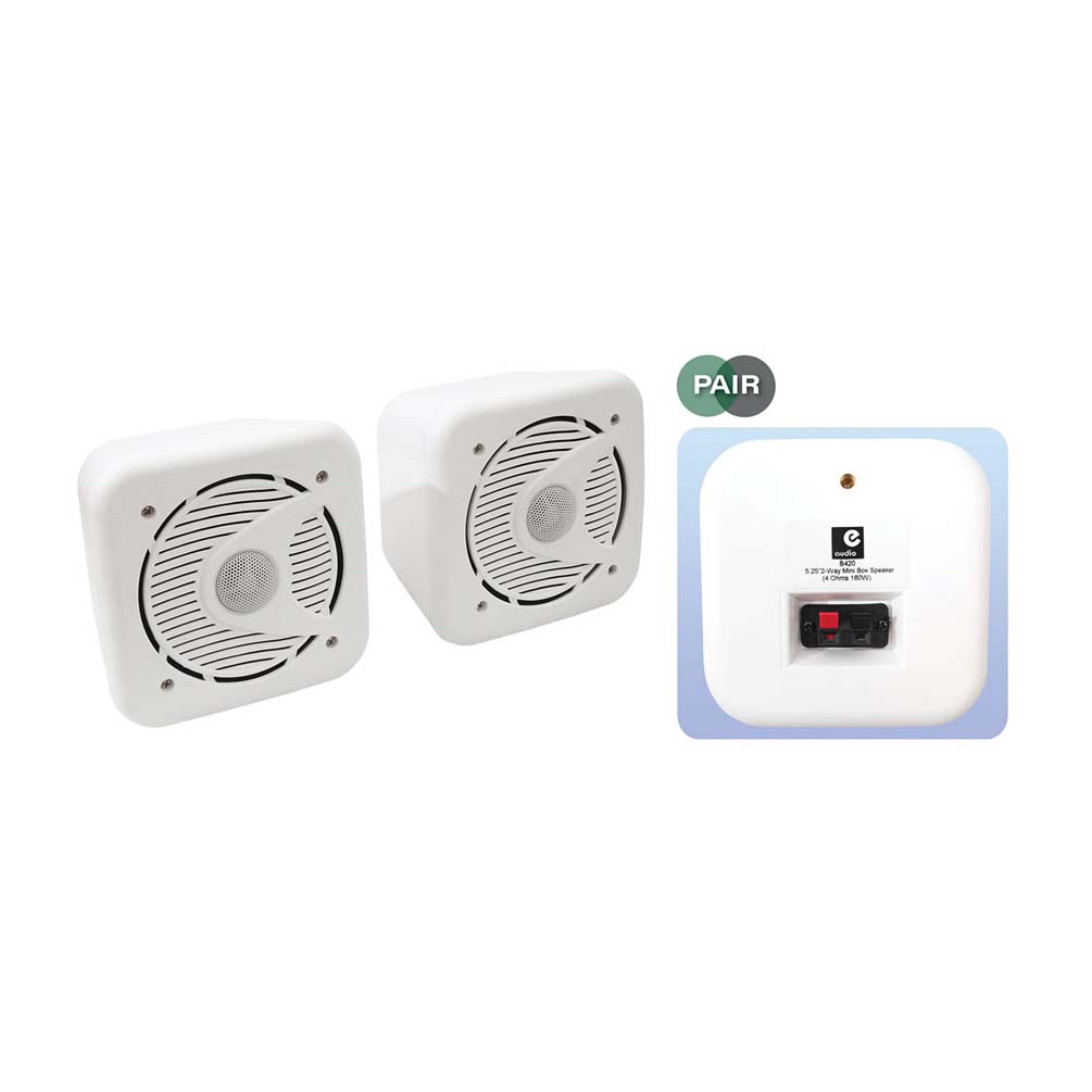 We're really sorry... ...we don't currently have that one in stock Please add your email and we'll notify you when it's back Email Your Name Your Email Your Comments SendClose Window Login Details Email Password Remember login on this computer? New Account Full Name Email Password All Categories» Advertising EquipmentAerials and Signal EquipmentAudio VisualAutomotive and MobileCabinet Speakers and AccCablesConnectorsDoor Entry and IntercomsElectricalEntertainment LightingGift IdeasHeating and CoolingHobbiesHome and GardenLampsLeadsLightingPower SuppliesPublic AddressSecurity ProductsSound SectionStands and SupportsStorageTelecommunicationTest EquipmentTools and Service Aids » 100V Line TransformersAttenuatorsMedia PlayersMegaphonesPA AmplifiersPA MicrophonesPA SpeakersRadio CommunicationSound LimitersSpeaker Horns » 100 Volt Ceiling100 Volt WallADS SpeakerCeiling SpeakersIn Wall SpeakerLow Impedance WallMarine SpeakerOutdoor SpeakerPendant SpeakerSpeaker Accessories » All Products eAudio White 5.25 inch 3 Way Mini Box Speakers 4Ohm 160WPRODUCT ID B420These compact 2 Way Mini Box Speakers are ideal for monitor or surround sound applications in domestic or commercial settings. Their water-resistant construction means that they are sui...STOCK LEVEL 81 In StockPrice: £29.99 Quantity-+ Add to Cart« Previous | Next »Description e-audio 5.25" 2 Way Mini Box Speaker (4 Ohms 160 W) These compact 2 Way Mini Box Speakers are ideal for monitor or surround sound applications in domestic or commercial settings. Their water-resistant construction means that they are suitable for use in kitchens, bathrooms, sheltered smoking areas, etc. They feature a shielded magnet, Poly Mica woofer cone and a built-in moulded grill, gold plated plug terminals for quick connection and a threaded rear mounting position. Part of the e-audio Everyday Audio range. Priced and sold in pairs. • Ideal for Home or Commercial use including Surround Sound • Water-Resistant design suitable for Kitchens or Bathrooms • Shielded Magnet, Poly Mica Woofer Cone and Moulded Grill • Gold plated plug terminals for Quick Connection • Threaded rear mounting position Colour White Dimensions (mm) 154x154x110 Packing Retail Box Impedance (Ohms) 8 Sensitivity (dB) 90 Peak Music Power (W) 160 Power RMS (W) 80 Frequency Response (Hz) 60-20000 Type 2 Way