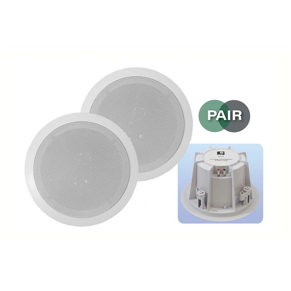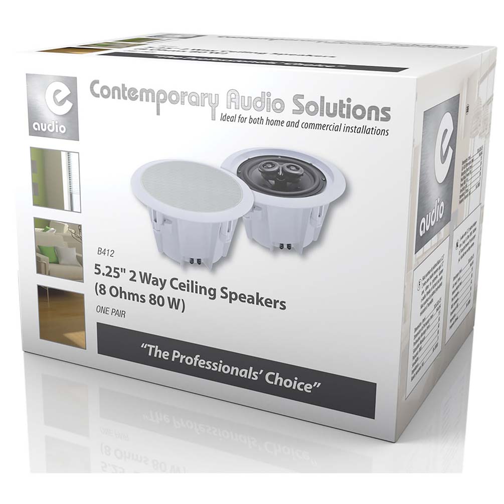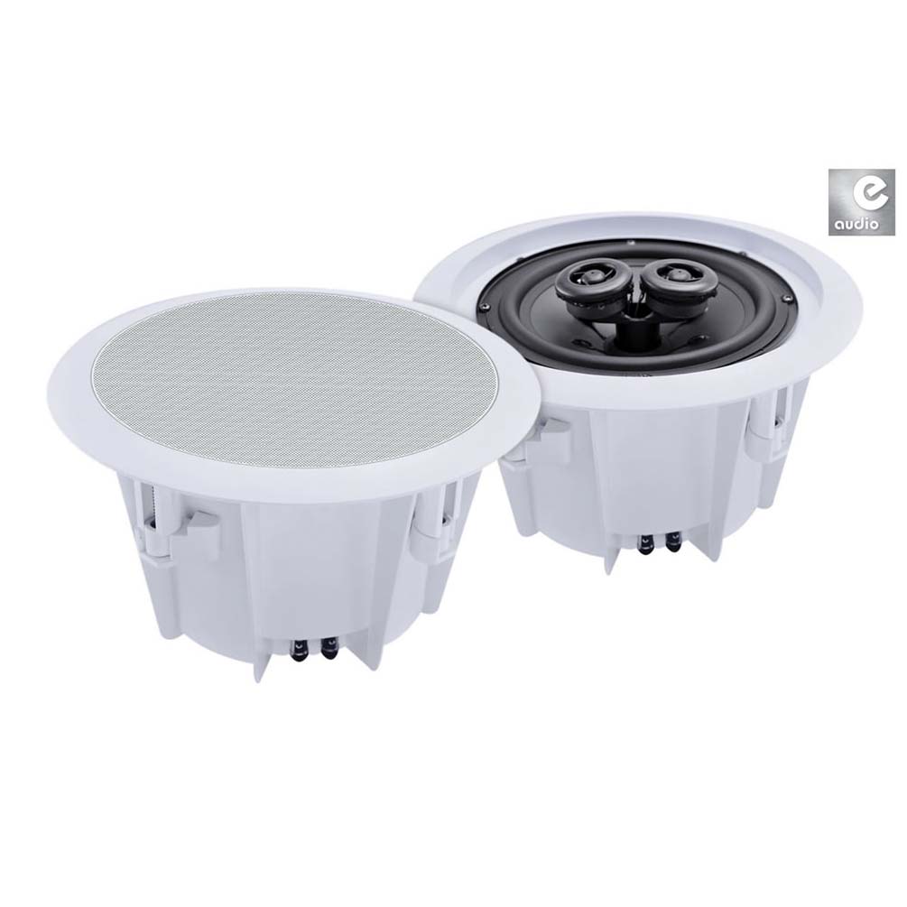 This pair 2 Way Ceiling speakers is ideal for use in most commercial and domestic installations including home cinema, surround sound and multi-room systems; compatible with most multi-room amplifiers. The Ceiling Speakers are moisture-resistant, which makes them suitable for use in kitchens or bathrooms. The 1/2" High Polymer Tweeters offer clear, crisp sound reproduction, while the heavy duty rubber-edged base speaker gives enhanced bass response. Part of the e-audio Professionals' Choice range, the Ceiling Speakers are easy to fit and are supplied with a cutting template for convenience. Priced and sold in pairs.