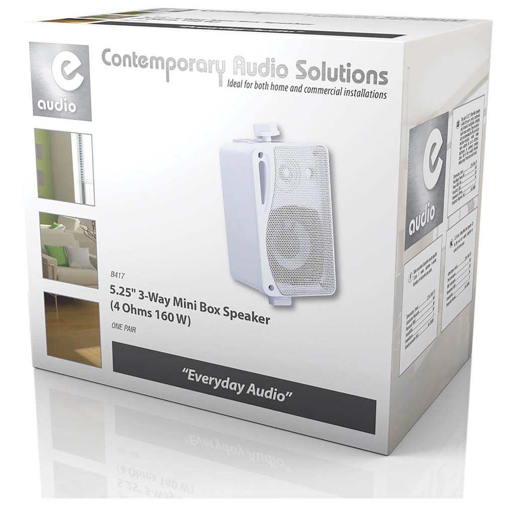 We're really sorry... ...we don't currently have that one in stock Please add your email and we'll notify you when it's back Email Your Name Your Email Your Comments SendClose Window Login Details Email Password Remember login on this computer? New Account Full Name Email Password All Categories» Advertising EquipmentAerials and Signal EquipmentAudio VisualAutomotive and MobileCabinet Speakers and AccCablesConnectorsDoor Entry and IntercomsElectricalEntertainment LightingGift IdeasHeating and CoolingHobbiesHome and GardenLampsLeadsLightingPower SuppliesPublic AddressSecurity ProductsSound SectionStands and SupportsStorageTelecommunicationTest EquipmentTools and Service Aids » 100V Line TransformersAttenuatorsMedia PlayersMegaphonesPA AmplifiersPA MicrophonesPA SpeakersRadio CommunicationSound LimitersSpeaker Horns » 100 Volt Ceiling100 Volt WallADS SpeakerCeiling SpeakersIn Wall SpeakerLow Impedance WallMarine SpeakerOutdoor SpeakerPendant SpeakerSpeaker Accessories » All Products eAudio White 5.25 inch. 3 Way Mini Box Speakers 4Ohm 160WPRODUCT ID B417This pair of 5.25" 3 Way Mini Speakers is ideal for use in many commercial and domestic installations including multi-room systems; they are particularly recommended for PA use. Th...STOCK LEVEL 142 In StockPrice: £37.49 Quantity-+ Add to Cart« Previous | Next »Description This pair of 5.25" 3 Way Mini Speakers is ideal for use in many commercial and domestic installations including multi-room systems; they are particularly recommended for PA use. The Speakers are moisture-resistant, which makes them suitable for use in kitchens, bathrooms or sheltered smoking areas. The durable ABS cabinet houses a 5.25" rubber surround woofer, a wide dispersion cone midrange and a 1" super dome tweeter for powerful sound at all volume levels. Part of the e-audio Everyday Audio range, the 3 Way Mini Speakers are easy to fit and are supplied with a mounting bracket for convenience. Priced and sold in pairs. • Ideal for Domestic or Commercial use including Multi-Room Systems • Water-Resistant design suitable for use in Kitchens and Bathrooms • Components designed to offer powerful sound at all volume levels • Tough ABS Construction for durability • Easy to Fit - Mounting Bracket Included Colour White Dimensions (mm) 225x150x135 Packing Retail Box Impedance (Ohms) 4 Sensitivity (dB) 90 Peak Music Power (W) 160 Power RMS (W) 80 Frequency Response (Hz) 60-20000 Connections Quick connect terminals