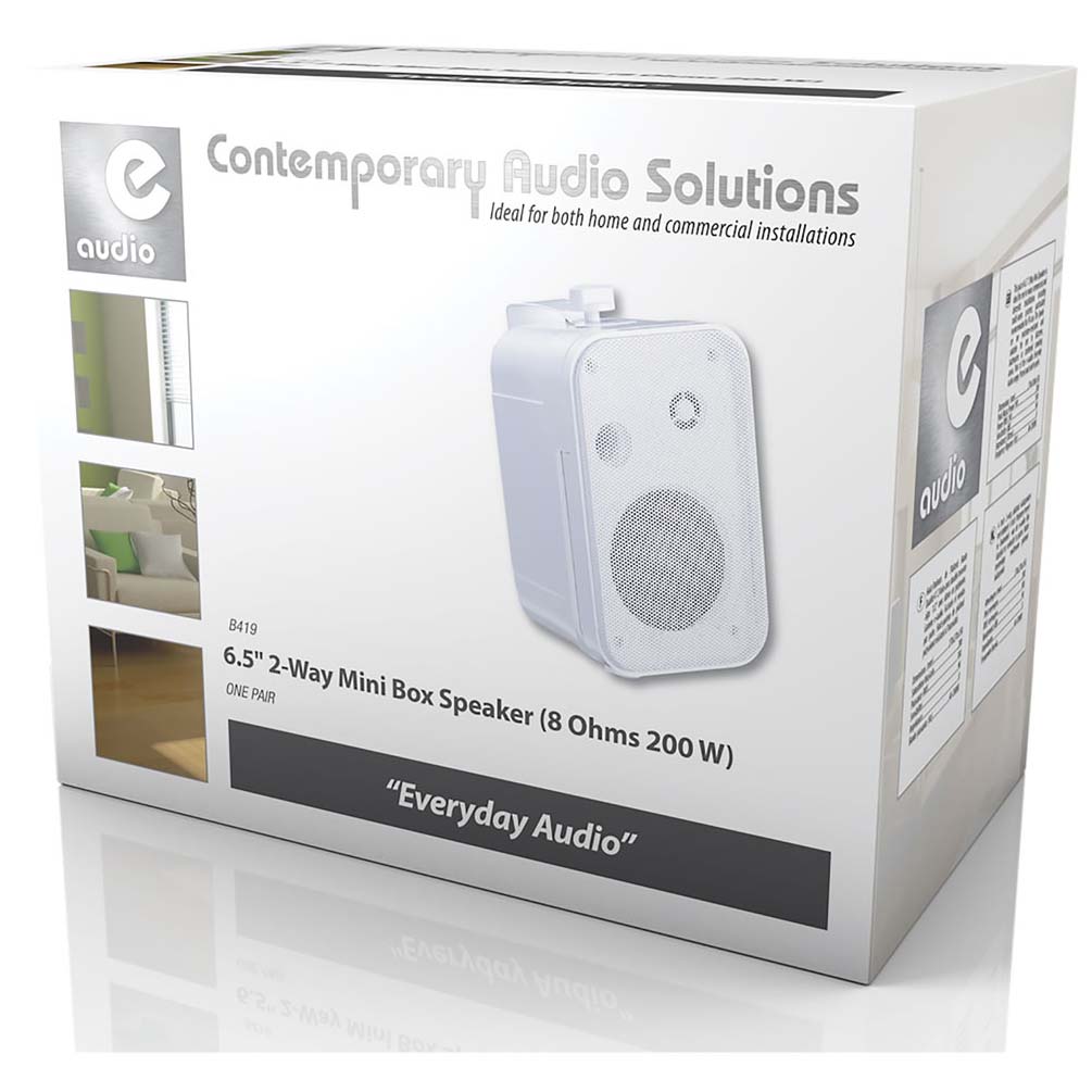 We're really sorry... ...we don't currently have that one in stock Please add your email and we'll notify you when it's back Email Your Name Your Email Your Comments SendClose Window Login Details Email Password Remember login on this computer? New Account Full Name Email Password All Categories» Advertising EquipmentAerials and Signal EquipmentAudio VisualAutomotive and MobileCabinet Speakers and AccCablesConnectorsDoor Entry and IntercomsElectricalEntertainment LightingGift IdeasHeating and CoolingHobbiesHome and GardenLampsLeadsLightingPower SuppliesPublic AddressSecurity ProductsSound SectionStands and SupportsStorageTelecommunicationTest EquipmentTools and Service Aids » 100V Line TransformersAttenuatorsMedia PlayersMegaphonesPA AmplifiersPA MicrophonesPA SpeakersRadio CommunicationSound LimitersSpeaker Horns » 100 Volt Ceiling100 Volt WallADS SpeakerCeiling SpeakersIn Wall SpeakerLow Impedance WallMarine SpeakerOutdoor SpeakerPendant SpeakerSpeaker Accessories » All Products eAudio White 6.5 inch. 3 Way Mini Box Speakers 8Ohm 200WPRODUCT ID B419This pair of 6.5" 2 Way Mini Speakers is ideal for use in many commercial and domestic installations including multi-room systems; they are particularly recommended for PA use. The...STOCK LEVEL 484 In StockPrice: £59.99 Quantity-+ Add to Cart« Previous | Next »Description This pair of 6.5" 2 Way Mini Speakers is ideal for use in many commercial and domestic installations including multi-room systems; they are particularly recommended for PA use. The Speakers are moisture-resistant, which makes them suitable for use in kitchens, bathrooms or sheltered smoking areas. The durable ABS cabinet houses a 6.5" rubber surround woofer and 1/2" polymer tweeter, providing an extended bass response. Part of the e-audio Everyday Audio range, the 2 Way Mini Speakers are easy to fit and are supplied with a mounting bracket for convenience. Priced and sold in pairs. • Ideal for Domestic or Commercial use including Multi-Room Systems • Water-Resistant design suitable for use in Kitchens and Bathrooms • Components designed to offer an extended bass response • Tough ABS Construction for durability • Easy to Fit - Mounting Bracket Included Colour White Dimensions (mm) 270x180x158 Packing Retail Box Impedance (Ohms) 8 Sensitivity (dB) 90 Peak Music Power (W) 200 Power RMS (W) 100 Frequency Response (Hz) 40-20000